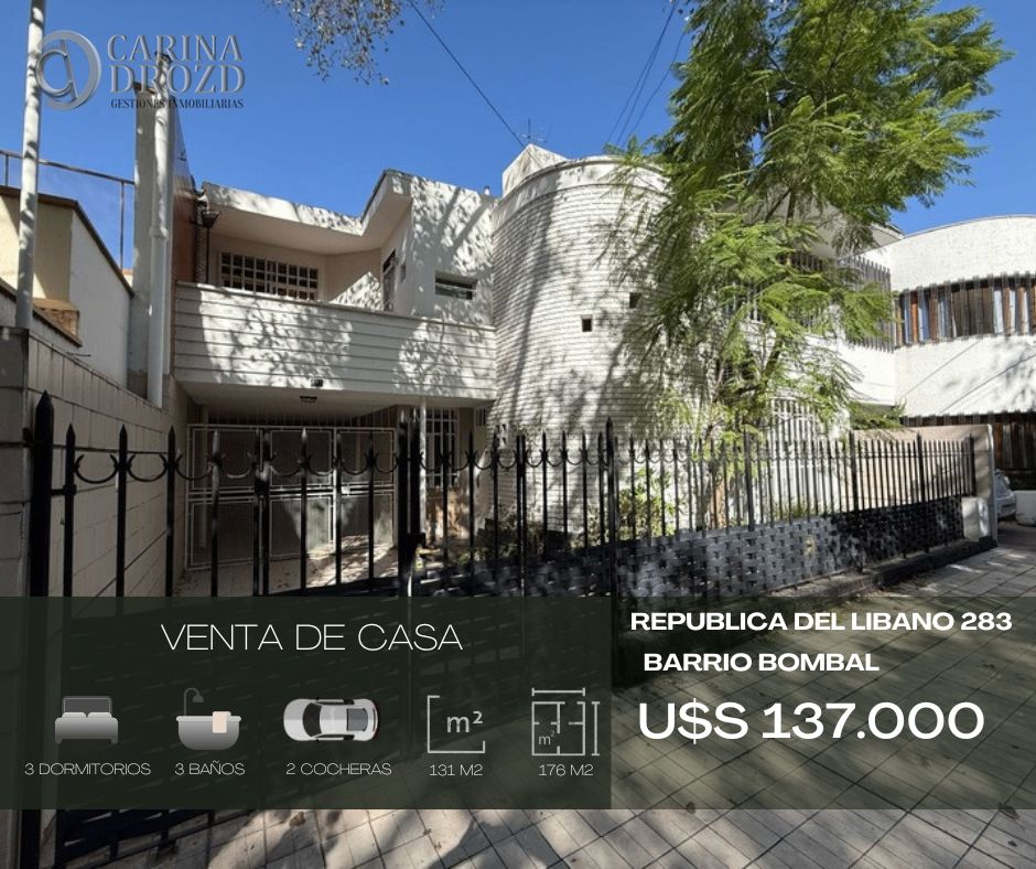 "CARINA DROCONTENIDO PROPIEDAD DE INMOCLICK.COM.ARZD gestiones inmobiVEA ESTA PUBLICACION ACTUALIZADA EN INMOCLICK.COM.ARliarias" VENDE: TOMADO DE INMOCLICK.COM.ARCASA BARRIO BOMBAL. CONTENIDO DE INMOCLICK.COM.ARIdeal: VIVIENDAPUBLICACION DE INMOCLICK.COM.AR/ OFICINAS/ CONSULTVEA ESTA PUBLICACION ACTUALIZADA EN INMOCLICK.COM.ARORIOS. InmePUBLICACION DE INMOCLICK.COM.ARjorable UbiCONTENIDO PROPIEDAD DE INMOCLICK.COM.ARcación: Calle RECONTENIDO PROPIEDAD DE INMOCLICK.COM.ARPUBLICA DEL LIBATOMADO DE INMOCLICK.COM.ARNO 283, entCOPIADO DE INMOCLICK.COM.ARre calles Capitán PUBLICACION DE INMOCLICK.COM.ARde FragataCONTENIDO DE INMOCLICK.COM.AR Moyano y PUBLICACION DE INMOCLICK.COM.ARSerú . FrentSUSTRAIDO DE INMOCLICK.COM.ARe: 10, 5 m.PUBLICACION DE INMOCLICK.COM.AR Superficie: 1VEA ESTA PUBLICACION ACTUALIZADA EN INMOCLICK.COM.AR31 m2 terr/ 176 m2 cCONTENIDO DE INMOCLICK.COM.ARubiertos. SiCONTENIDO DE INMOCLICK.COM.ARmétrica. En 2 PlanCONTENIDO DE INMOCLICK.COM.ARtas. Consta CONTENIDO DE INMOCLICK.COM.ARde en Total: 3 DPUBLICACION DE INMOCLICK.COM.ARORMITORIOS- 3 BAÑPUBLICACION DE INMOCLICK.COM.AROS- PLANTA BAJA: CONTENIDO PROPIEDAD DE INMOCLICK.COM.ARJARDIN Frontal- 2 CONTENIDO PROPIEDAD DE INMOCLICK.COM.ARCOCHERAS (una cuPUBLICACION DE INMOCLICK.COM.ARbierta con portóCONTENIDO PROPIEDAD DE INMOCLICK.COM.ARn manual y entrada vPUBLICACION DE INMOCLICK.COM.ARehicular, descubierCONTENIDO DE INMOCLICK.COM.ARto)- COCINA con VEA ESTA PUBLICACION ACTUALIZADA EN INMOCLICK.COM.ARamoblamienCOPIADO DE INMOCLICK.COM.ARtos completos, COPIADO DE INMOCLICK.COM.ARpisos de mármVEA ESTA PUBLICACION ACTUALIZADA EN INMOCLICK.COM.ARol- LAVANDVEA ESTA PUBLICACION ACTUALIZADA EN INMOCLICK.COM.ARERÍA IndependienVEA ESTA PUBLICACION ACTUALIZADA EN INMOCLICK.COM.ARte- DEPOSITO- ampTOMADO DE INMOCLICK.COM.ARlio LIVING COCONTENIDO DE INMOCLICK.COM.ARMEDOR, de 22 m2,SUSTRAIDO DE INMOCLICK.COM.AR con pisos de mármoVEA ESTA PUBLICACION ACTUALIZADA EN INMOCLICK.COM.ARl- Baño ToiletteCOPIADO DE INMOCLICK.COM.AR con Bañadera-SUSTRAIDO DE INMOCLICK.COM.AR ESTAR DIARIO de CONTENIDO DE INMOCLICK.COM.AR24 m2- PLANTA ALTA: CONTENIDO PROPIEDAD DE INMOCLICK.COM.ARHall distriSUSTRAIDO DE INMOCLICK.COM.ARbuidor. Baño con COPIADO DE INMOCLICK.COM.ARbañadera- 3 DORMITVEA ESTA PUBLICACION ACTUALIZADA EN INMOCLICK.COM.ARORIOS con pisosCOPIADO DE INMOCLICK.COM.AR de parquetCONTENIDO DE INMOCLICK.COM.AR, dos con PlacaCOPIADO DE INMOCLICK.COM.ARres con baulSUSTRAIDO DE INMOCLICK.COM.AReras, el PriPUBLICACION DE INMOCLICK.COM.ARncipal de 21 mSUSTRAIDO DE INMOCLICK.COM.AR2, con baño en SUITTPUBLICACION DE INMOCLICK.COM.ARE. TERRAZA BALCON dTOMADO DE INMOCLICK.COM.ARe 7 m2. Todas lasPUBLICACION DE INMOCLICK.COM.AR aberturas CONTENIDO DE INMOCLICK.COM.ARcon rejas.SUSTRAIDO DE INMOCLICK.COM.AR VALOR: U$S 137.0SUSTRAIDO DE INMOCLICK.COM.AR00- DESOCUPADSUSTRAIDO DE INMOCLICK.COM.ARA! - Escucho OFERTPUBLICACION DE INMOCLICK.COM.ARAS por pagCONTENIDO PROPIEDAD DE INMOCLICK.COM.ARo contado. APTPUBLICACION DE INMOCLICK.COM.ARA CREDITO CONTENIDO PROPIEDAD DE INMOCLICK.COM.ARHIPOTECARIOTOMADO DE INMOCLICK.COM.AR