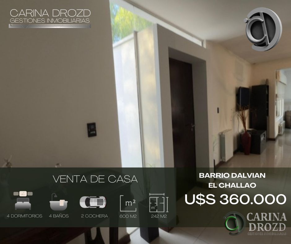 "CARINA DRSUSTRAIDO DE INMOCLICK.COM.AROZD gestiones inmobSUSTRAIDO DE INMOCLICK.COM.ARiliarias VENDE": ESUSTRAIDO DE INMOCLICK.COM.ARXCELENTE CASA dSUSTRAIDO DE INMOCLICK.COM.ARe CATEGORÍA!! en BaCOPIADO DE INMOCLICK.COM.ARrrio PrivadPUBLICACION DE INMOCLICK.COM.ARo "DALVIAN". La propVEA ESTA PUBLICACION ACTUALIZADA EN INMOCLICK.COM.ARiedad posee TerrenCONTENIDO PROPIEDAD DE INMOCLICK.COM.ARo de 600 m2 y 24SUSTRAIDO DE INMOCLICK.COM.AR2 m2 cubieVEA ESTA PUBLICACION ACTUALIZADA EN INMOCLICK.COM.ARrtos distrubuídosPUBLICACION DE INMOCLICK.COM.AR en 2 plantas. LaTOMADO DE INMOCLICK.COM.AR misma poseeCOPIADO DE INMOCLICK.COM.AR privilegiadTOMADO DE INMOCLICK.COM.ARas vistas a lPUBLICACION DE INMOCLICK.COM.ARa montaña CONTENIDO DE INMOCLICK.COM.ARy a la ciuPUBLICACION DE INMOCLICK.COM.ARdad y CONSTTOMADO DE INMOCLICK.COM.ARA DE: HALLCOPIADO DE INMOCLICK.COM.AR DE INGRESO- ESVEA ESTA PUBLICACION ACTUALIZADA EN INMOCLICK.COM.ARTAR COMEDOR ampliCONTENIDO PROPIEDAD DE INMOCLICK.COM.ARo y muy luminosSUSTRAIDO DE INMOCLICK.COM.ARo - LIVING VEA ESTA PUBLICACION ACTUALIZADA EN INMOCLICK.COM.ARCOMEDOR - COCINA iVEA ESTA PUBLICACION ACTUALIZADA EN INMOCLICK.COM.ARndependiente conVEA ESTA PUBLICACION ACTUALIZADA EN INMOCLICK.COM.AR amoblamientosVEA ESTA PUBLICACION ACTUALIZADA EN INMOCLICK.COM.AR completos de alacenCOPIADO DE INMOCLICK.COM.ARas y bajomesadas- 4CONTENIDO PROPIEDAD DE INMOCLICK.COM.AR DORMITORIOS CONTENIDO PROPIEDAD DE INMOCLICK.COM.ARen TOTAL: en P.A: 1VEA ESTA PUBLICACION ACTUALIZADA EN INMOCLICK.COM.AR DORMITORIO PRISUSTRAIDO DE INMOCLICK.COM.ARNCIPAL en SUITE TOMADO DE INMOCLICK.COM.ARcon BAÑO y ANTSUSTRAIDO DE INMOCLICK.COM.AREBAÑO, Jacuzzi cCOPIADO DE INMOCLICK.COM.ARon hidromasaje,COPIADO DE INMOCLICK.COM.AR ducha, VESTICONTENIDO DE INMOCLICK.COM.ARDOR y salida a ampCONTENIDO DE INMOCLICK.COM.ARlio BALCON. LosCONTENIDO PROPIEDAD DE INMOCLICK.COM.AR otros 3 DSUSTRAIDO DE INMOCLICK.COM.ARORMITORIOS se encSUSTRAIDO DE INMOCLICK.COM.ARuentran en PSUSTRAIDO DE INMOCLICK.COM.ARlanta Baja, dos de SUSTRAIDO DE INMOCLICK.COM.ARellos con amPUBLICACION DE INMOCLICK.COM.ARplios placaCONTENIDO DE INMOCLICK.COM.ARres, BAÑO en SUITE cPUBLICACION DE INMOCLICK.COM.ARon antebañoPUBLICACION DE INMOCLICK.COM.AR, y salida al jaCONTENIDO DE INMOCLICK.COM.ARrdín- 4 BAÑOSCONTENIDO DE INMOCLICK.COM.AR en total (3 ePUBLICACION DE INMOCLICK.COM.ARn Suite y 1 TOICONTENIDO DE INMOCLICK.COM.ARLETTE en pCONTENIDO DE INMOCLICK.COM.ARlanta baja) - COCHERVEA ESTA PUBLICACION ACTUALIZADA EN INMOCLICK.COM.ARA DOBLE amSUSTRAIDO DE INMOCLICK.COM.ARplia y cómVEA ESTA PUBLICACION ACTUALIZADA EN INMOCLICK.COM.ARoda con estrucCONTENIDO PROPIEDAD DE INMOCLICK.COM.ARtura para pergSUSTRAIDO DE INMOCLICK.COM.ARola - ESTUDICOPIADO DE INMOCLICK.COM.ARO/ ESCRITORSUSTRAIDO DE INMOCLICK.COM.ARIO -LAVANDERIA indCONTENIDO PROPIEDAD DE INMOCLICK.COM.ARependiente y sectorCONTENIDO PROPIEDAD DE INMOCLICK.COM.ARizada con bacha y mSUSTRAIDO DE INMOCLICK.COM.ARuebles de guarVEA ESTA PUBLICACION ACTUALIZADA EN INMOCLICK.COM.ARdado- PATISUSTRAIDO DE INMOCLICK.COM.ARO lateral con variosCOPIADO DE INMOCLICK.COM.AR depósitos y cCOPIADO DE INMOCLICK.COM.ARhurrasquera con gTOMADO DE INMOCLICK.COM.ARas- Gran GACONTENIDO DE INMOCLICK.COM.ARLERIA techada- JARVEA ESTA PUBLICACION ACTUALIZADA EN INMOCLICK.COM.ARDIN amplio con herCONTENIDO DE INMOCLICK.COM.ARmoso parquizado,PUBLICACION DE INMOCLICK.COM.AR con PISCINACONTENIDO DE INMOCLICK.COM.AR. El inmuePUBLICACION DE INMOCLICK.COM.ARble cuenta taTOMADO DE INMOCLICK.COM.ARmbien con CalefaccSUSTRAIDO DE INMOCLICK.COM.ARión Central conCOPIADO DE INMOCLICK.COM.AR Radiadores yVEA ESTA PUBLICACION ACTUALIZADA EN INMOCLICK.COM.AR Aires AconCONTENIDO DE INMOCLICK.COM.ARdicionados en todoCOPIADO DE INMOCLICK.COM.ARs los ambientSUSTRAIDO DE INMOCLICK.COM.ARes. AMENITIES:SUSTRAIDO DE INMOCLICK.COM.AR El barrio cuenta SUSTRAIDO DE INMOCLICK.COM.ARcon una infraestruCONTENIDO PROPIEDAD DE INMOCLICK.COM.ARctura de grCONTENIDO PROPIEDAD DE INMOCLICK.COM.ARan categoría queCONTENIDO DE INMOCLICK.COM.AR incluye: PóPUBLICACION DE INMOCLICK.COM.ARrtico de ingCONTENIDO PROPIEDAD DE INMOCLICK.COM.ARreso jerarquizado, PCONTENIDO DE INMOCLICK.COM.ARerímetro conPUBLICACION DE INMOCLICK.COM.ARtrolado, SVEA ESTA PUBLICACION ACTUALIZADA EN INMOCLICK.COM.AReguridad lasTOMADO DE INMOCLICK.COM.AR 24 hs, Espacios verSUSTRAIDO DE INMOCLICK.COM.ARdes, Plaza coSUSTRAIDO DE INMOCLICK.COM.ARn juegos paraCONTENIDO PROPIEDAD DE INMOCLICK.COM.AR niños, Canchas dTOMADO DE INMOCLICK.COM.ARe fútbol, CanCONTENIDO DE INMOCLICK.COM.ARchas de basCONTENIDO DE INMOCLICK.COM.ARquet, CanchasCOPIADO DE INMOCLICK.COM.AR de tenis,CanchaSUSTRAIDO DE INMOCLICK.COM.ARs de Paddle, Club hTOMADO DE INMOCLICK.COM.ARouse con piscinSUSTRAIDO DE INMOCLICK.COM.ARa, Club hípiVEA ESTA PUBLICACION ACTUALIZADA EN INMOCLICK.COM.ARco dentro delVEA ESTA PUBLICACION ACTUALIZADA EN INMOCLICK.COM.AR barrio. VALORSUSTRAIDO DE INMOCLICK.COM.AR: U$S 360.000.COPIADO DE INMOCLICK.COM.AR Antiguedad: 16 añoCONTENIDO DE INMOCLICK.COM.ARs. EscrituraciTOMADO DE INMOCLICK.COM.ARón inmediata.CONTENIDO DE INMOCLICK.COM.AR Se escuchan OFTOMADO DE INMOCLICK.COM.ARERTAS PAGO CONCOPIADO DE INMOCLICK.COM.ARTADO. PosibilidCOPIADO DE INMOCLICK.COM.ARad de recibirCONTENIDO DE INMOCLICK.COM.AR permuta deTOMADO DE INMOCLICK.COM.AR casa mas pequeñVEA ESTA PUBLICACION ACTUALIZADA EN INMOCLICK.COM.ARa en el miCONTENIDO DE INMOCLICK.COM.ARsmo Barrio.VEA ESTA PUBLICACION ACTUALIZADA EN INMOCLICK.COM.AR