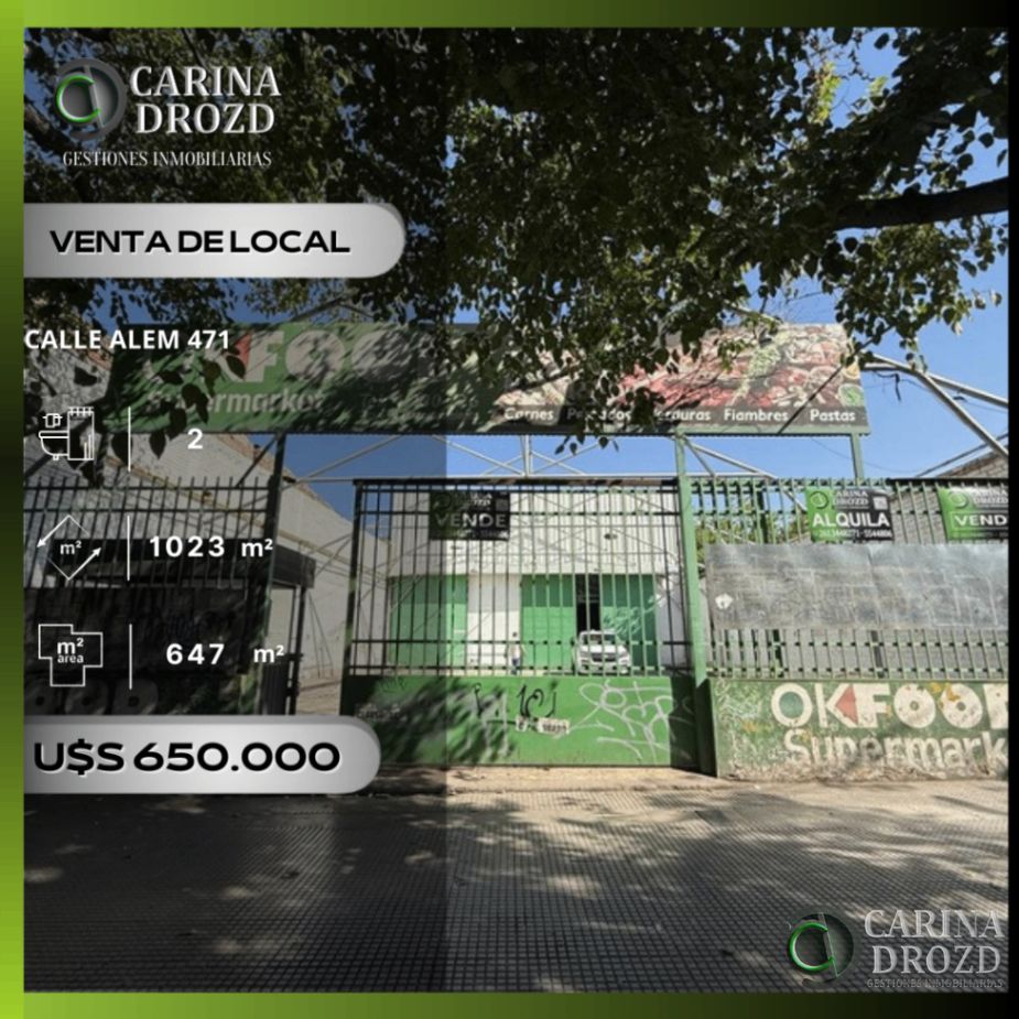 “CARINA DROZD VEA ESTA PUBLICACION ACTUALIZADA EN INMOCLICK.COM.ARgestiones inmobiliarPUBLICACION DE INMOCLICK.COM.ARias” VENDE VEA ESTA PUBLICACION ACTUALIZADA EN INMOCLICK.COM.ARGALPÓN con DECONTENIDO PROPIEDAD DE INMOCLICK.COM.ARPÓSITOS- InmeVEA ESTA PUBLICACION ACTUALIZADA EN INMOCLICK.COM.ARjorable UbicacVEA ESTA PUBLICACION ACTUALIZADA EN INMOCLICK.COM.ARión: Calle ALEM 4COPIADO DE INMOCLICK.COM.AR71, entre calles SSUSTRAIDO DE INMOCLICK.COM.ARalta y José FeCOPIADO DE INMOCLICK.COM.ARderico Moreno, frenTOMADO DE INMOCLICK.COM.ARte al HospCOPIADO DE INMOCLICK.COM.ARital Central. ICOPIADO DE INMOCLICK.COM.ARDEAL para: arTOMADO DE INMOCLICK.COM.ARmado de Stand o micCONTENIDO PROPIEDAD DE INMOCLICK.COM.ARrolocales SUSTRAIDO DE INMOCLICK.COM.ARtipo persa, IglesiCONTENIDO DE INMOCLICK.COM.ARa, Ferias, Ventas CSUSTRAIDO DE INMOCLICK.COM.ARomercialesSUSTRAIDO DE INMOCLICK.COM.AR, SupermerCONTENIDO DE INMOCLICK.COM.ARcado, DepósCOPIADO DE INMOCLICK.COM.ARitos, Agencias, SUSTRAIDO DE INMOCLICK.COM.ARetc. SUPERFISUSTRAIDO DE INMOCLICK.COM.ARCIE: 1.023 m2 TerrePUBLICACION DE INMOCLICK.COM.ARno- 647 m2 CONTENIDO PROPIEDAD DE INMOCLICK.COM.ARCubiertos TotaleCONTENIDO DE INMOCLICK.COM.ARs- Frente por AlemCONTENIDO PROPIEDAD DE INMOCLICK.COM.AR: 15,37 m. SIMETRICOVEA ESTA PUBLICACION ACTUALIZADA EN INMOCLICK.COM.AR. Consta de:COPIADO DE INMOCLICK.COM.AR Ingreso pCONTENIDO PROPIEDAD DE INMOCLICK.COM.ARor portón corredizTOMADO DE INMOCLICK.COM.ARo, a una impoCOPIADO DE INMOCLICK.COM.ARrtante PLAYA DE ECOPIADO DE INMOCLICK.COM.ARSTACIONAMIENTCONTENIDO DE INMOCLICK.COM.ARO. Con estructurasCOPIADO DE INMOCLICK.COM.AR metálicas TOMADO DE INMOCLICK.COM.ARpara cierrTOMADO DE INMOCLICK.COM.ARe, y luminarias. GALVEA ESTA PUBLICACION ACTUALIZADA EN INMOCLICK.COM.ARPON Principal: dCONTENIDO DE INMOCLICK.COM.ARe 507 m2 CuCOPIADO DE INMOCLICK.COM.ARbiertos propios, paVEA ESTA PUBLICACION ACTUALIZADA EN INMOCLICK.COM.ARrabólico, conVEA ESTA PUBLICACION ACTUALIZADA EN INMOCLICK.COM.AR 2 BAÑOS. Pisos cerSUSTRAIDO DE INMOCLICK.COM.ARámicos. 4 OFTOMADO DE INMOCLICK.COM.ARICINAS/ PRIVADOS enSUSTRAIDO DE INMOCLICK.COM.AR Planta Alta. DOSVEA ESTA PUBLICACION ACTUALIZADA EN INMOCLICK.COM.AR DEPOSITOS al fTOMADO DE INMOCLICK.COM.ARondo, independientTOMADO DE INMOCLICK.COM.ARes, 1 con BAÑOCOPIADO DE INMOCLICK.COM.AR, de 140 m2 CubieTOMADO DE INMOCLICK.COM.ARrtos totales. ServCOPIADO DE INMOCLICK.COM.ARicios: todos CONTENIDO DE INMOCLICK.COM.AR(gas industSUSTRAIDO DE INMOCLICK.COM.ARrial).VALORCONTENIDO PROPIEDAD DE INMOCLICK.COM.AR: U$S 650.00SUSTRAIDO DE INMOCLICK.COM.AR0- ESCRITURACCOPIADO DE INMOCLICK.COM.ARION Inmediata. Se reCONTENIDO DE INMOCLICK.COM.ARciben PERMUTAS variaTOMADO DE INMOCLICK.COM.ARs en Ciudad de MendTOMADO DE INMOCLICK.COM.ARoza y alrededores.PUBLICACION DE INMOCLICK.COM.AR